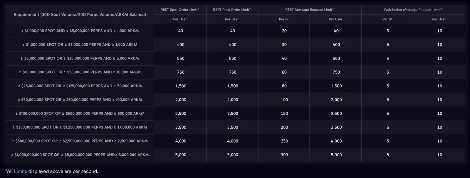 The Arkham Exchange’s API limits will also be updated per below.