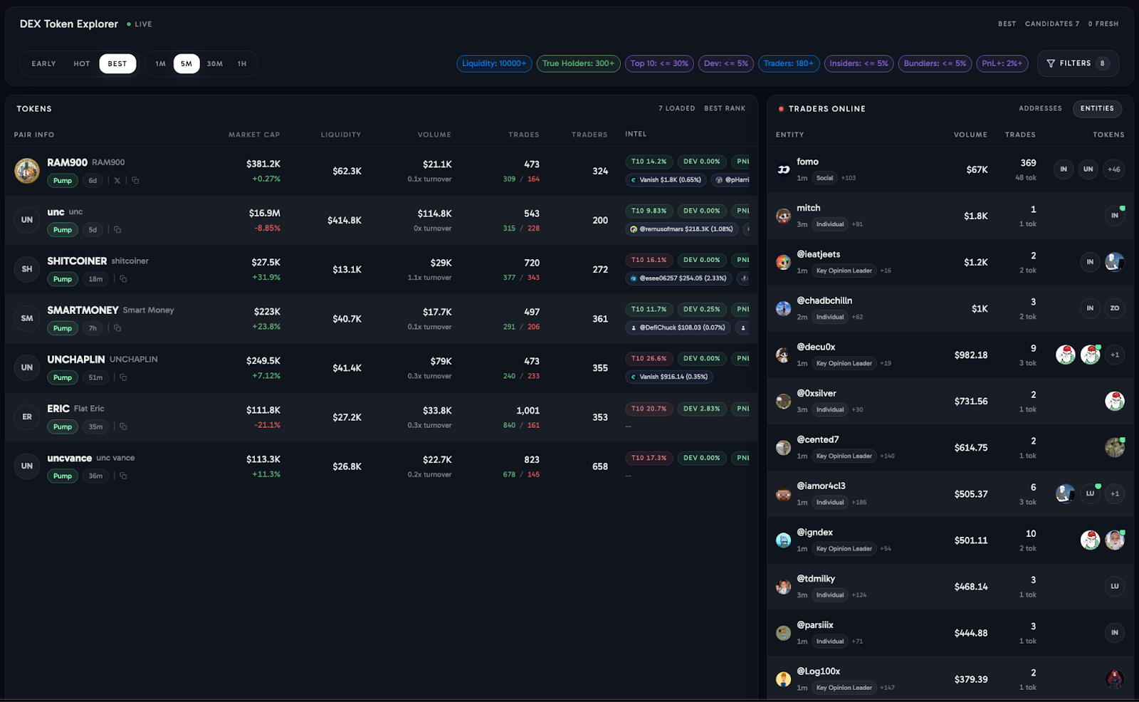 Track the most promising recently launched tokens and traders in real-time, then trade with that data on Arkham.