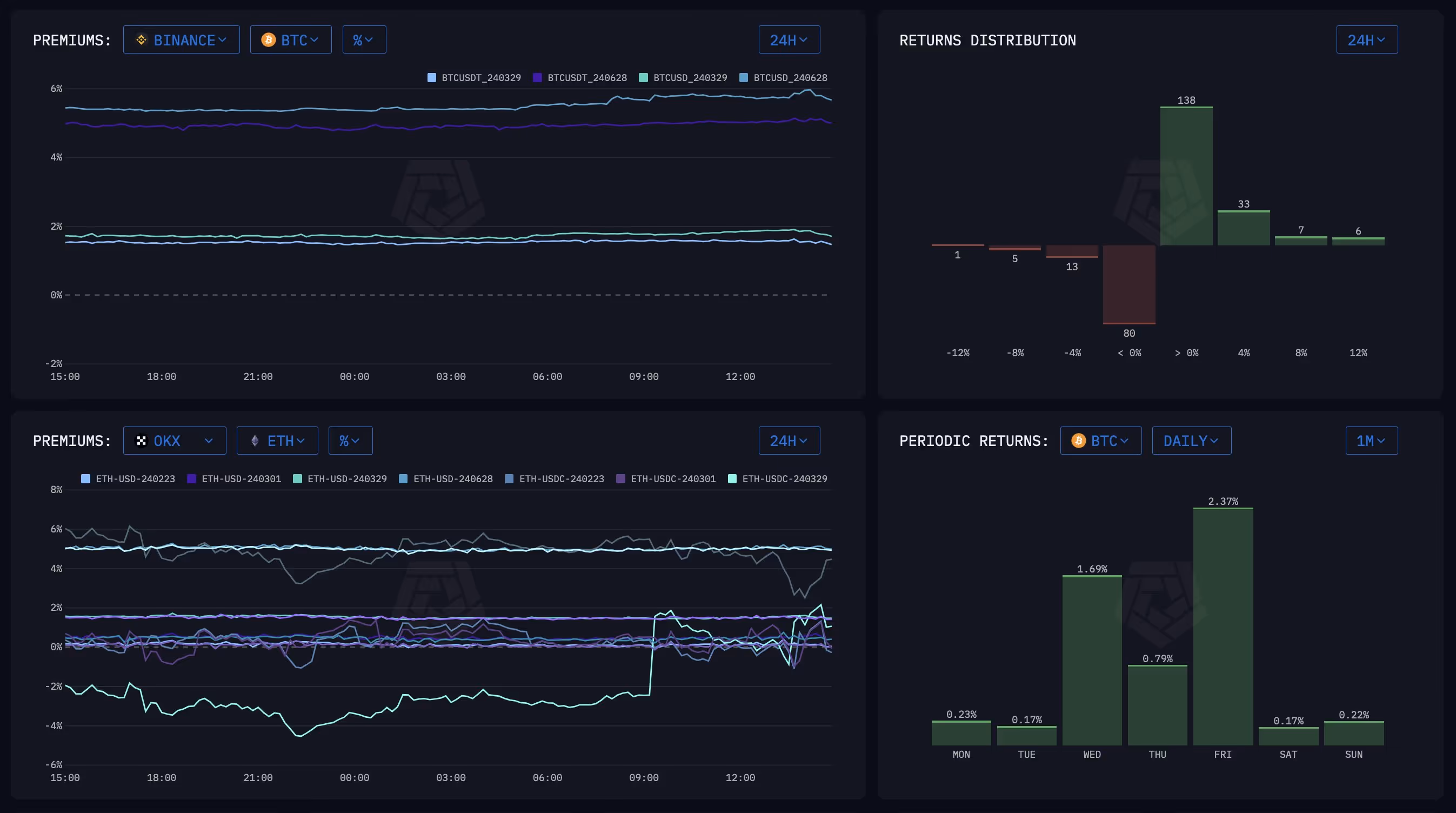 > Premiums: See premiums on different futures products for a selected coin and exchange.