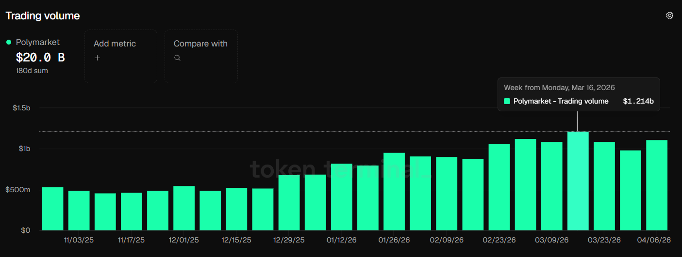 The on-chain era for prediction markets kicked off with Augur, which launched on Ethereum in 2018 and attempted to build a fully decentralized prediction market. Augur's design was technically sophisticated but suffered from low liquidity, complex user experience, and a disputed resolution mechanism that made markets difficult to settle cleanly. Polymarket launched in 2020 and took a more streamlined approach, building on Polygon and prioritizing user experience. It has since become the dominant venue globally by trading volume, clearing approximately $800M in weekly volume over the past six months.