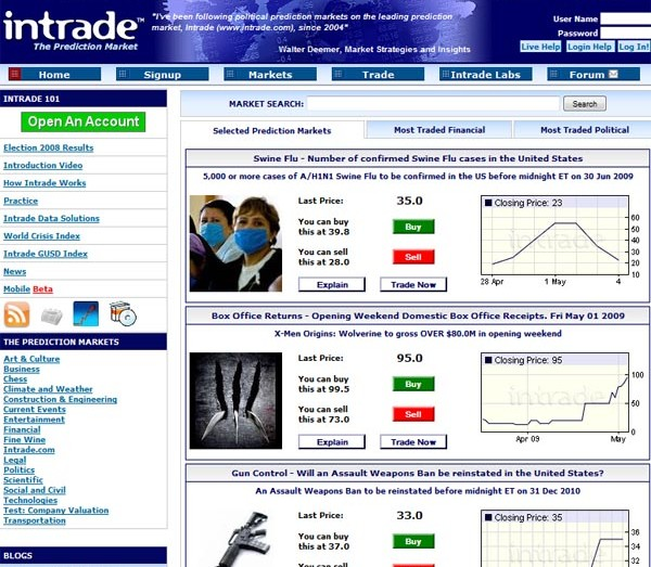 In the early 2000s, Intrade took prediction markets from an academic experiment to the general public. It quickly became the most visible commercial prediction market, allowing users to trade on political events, sports, and financial outcomes through a centralized web platform. At its peak, Intrade's prices were cited regularly by journalists and analysts as credible probability estimates. However, the platform shut down in 2013 following regulatory pressure and revelations of internal financial mismanagement.
