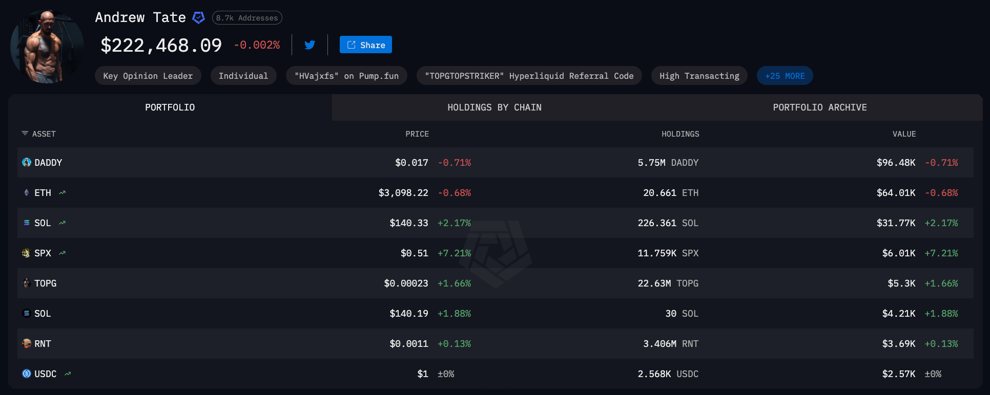 While a $794,000 loss may be absorbable for Tate, the on-chain evidence of his degenerate trading behavior stands in stark contrast to the calculated persona he projects to his subscribers.