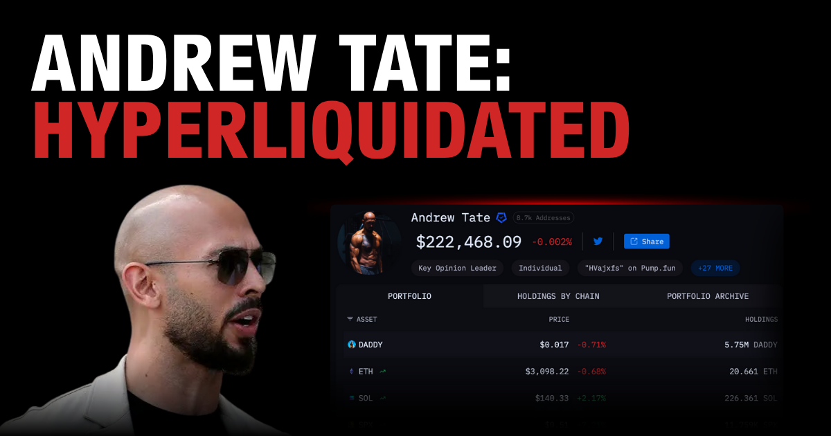 Many people will see the irony in Tate’s Hyperliquid liquidation. The influencer sells courses on financial mastery and trading discipline to millions of young men, but has now been publicly liquidated on one of the most popular decentralized exchanges in the world.