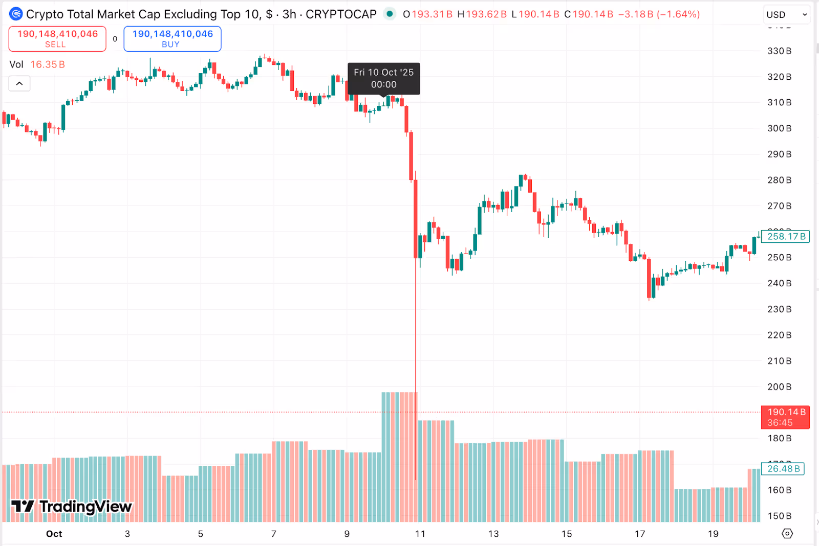 Many other factors can also cause market crashes - for example, many coins went down in tandem on the 10th of October 2025, as traders were simultaneously liquidated after a reported 100% tariff on China, leading to large amounts of positions being auto-deleveraged by exchanges, causing multiple billions in aggregated losses.
