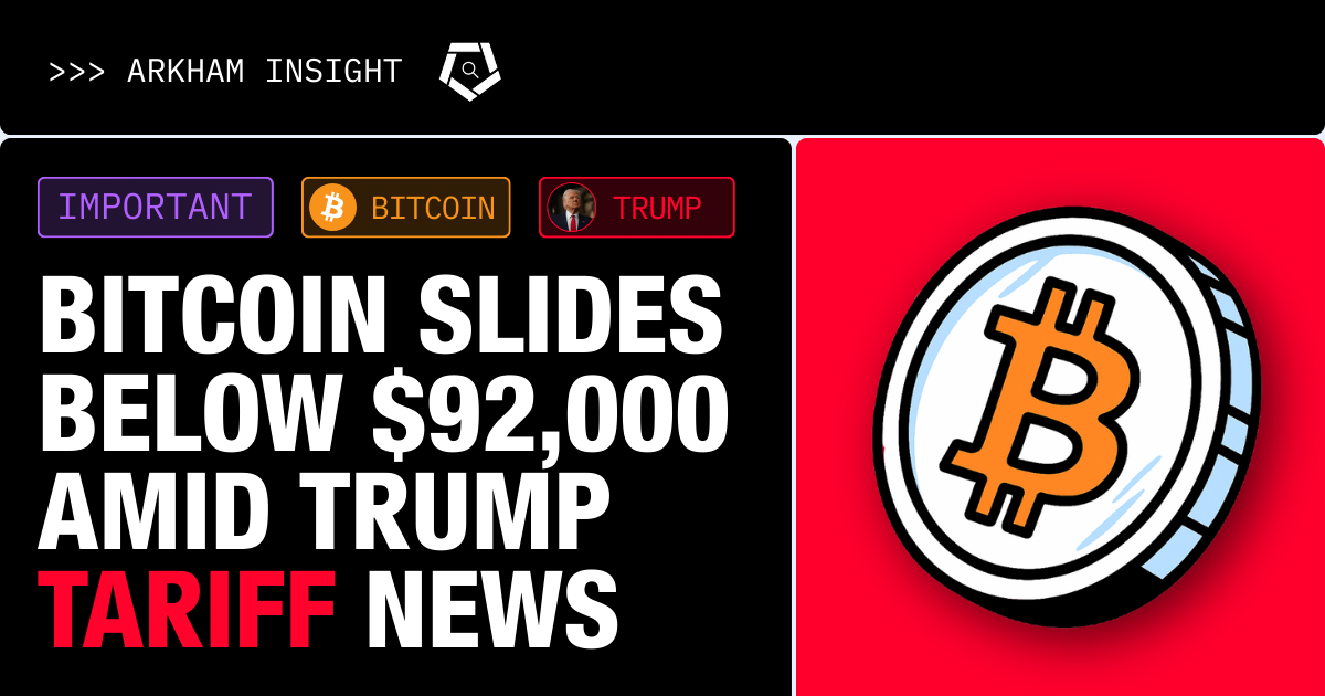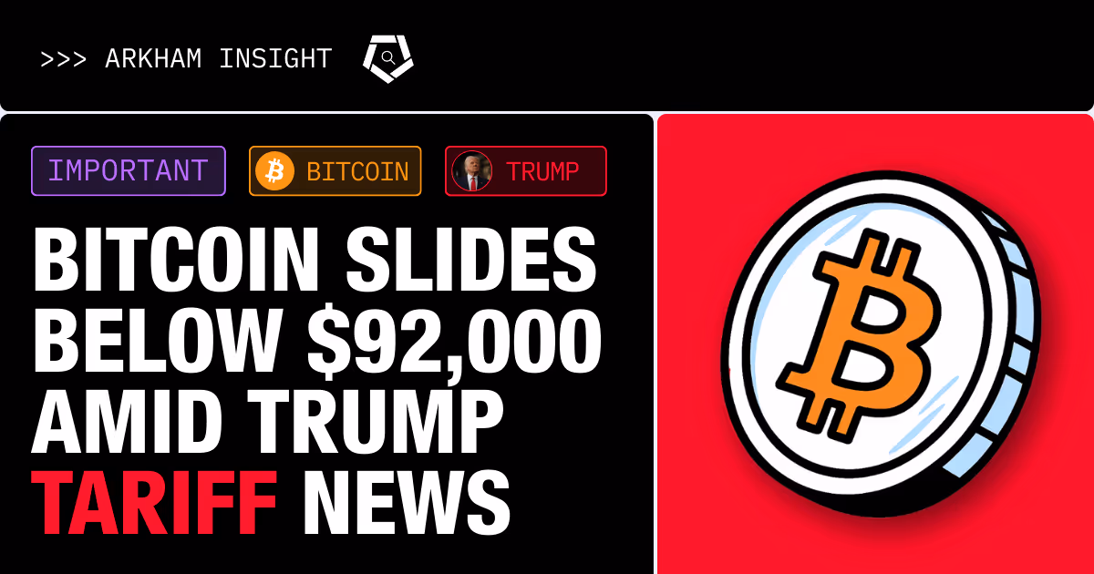 The most significant driver of the current market sentiment appears to be the news of President Donald Trump's plans to impose tariffs on European goods. This announcement, which occurred around the time BTC fell below $92K, has introduced considerable economic uncertainty, prompting a flight from risk assets like BTC. This macro event has directly influenced the observed market downturn, overshadowing earlier positive news such as Steak 'n Shake's $10 million BTC purchase, which, while a positive adoption signal, was not strong enough to counteract the broader bearish shift.