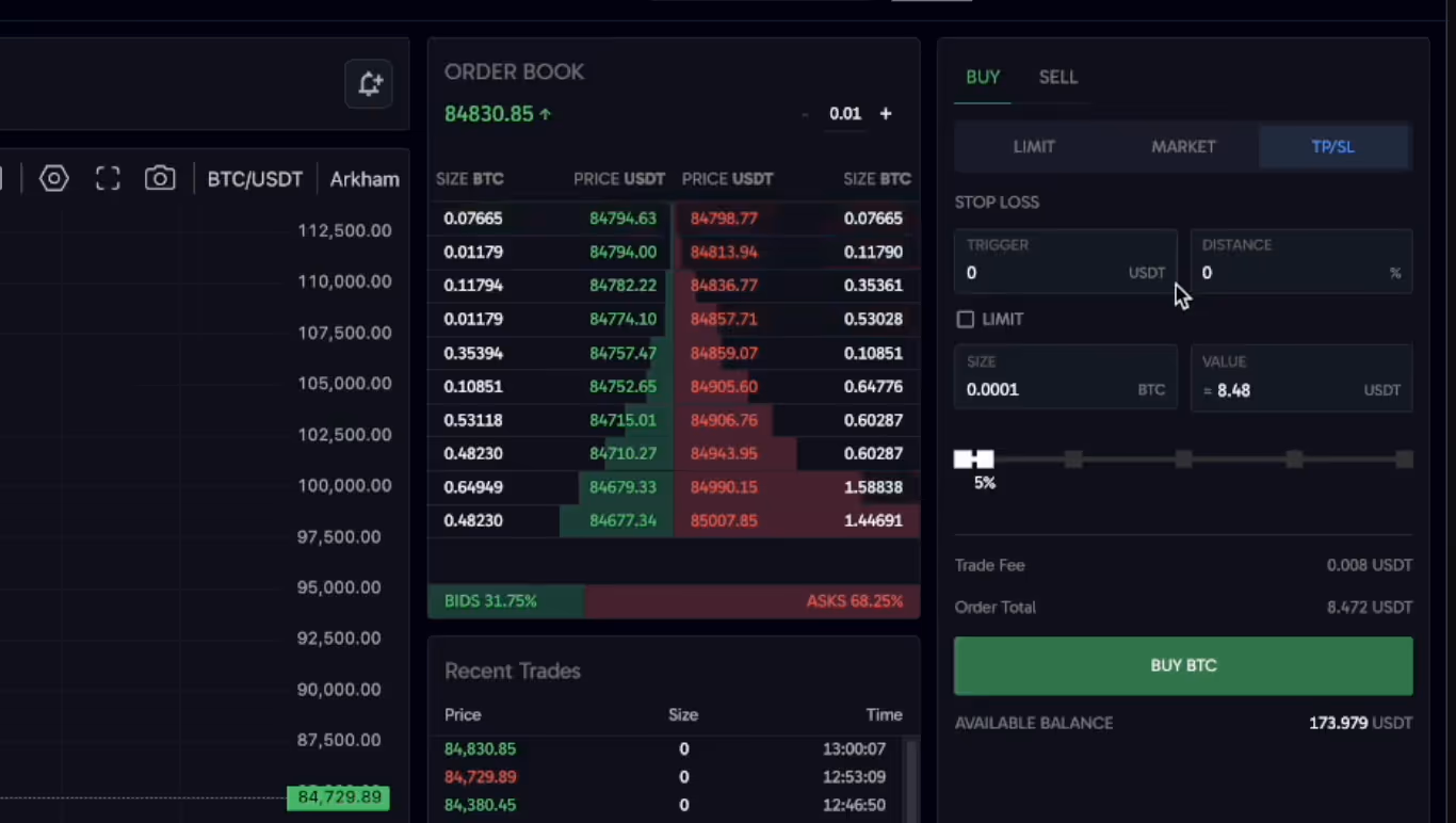 Executing a Trade on Arkham Exchange